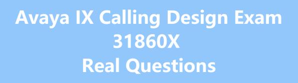 The real Avaya 31860X dumps contains the web address of the real exam questions and answers (PDF, VCE): https://www.pass4itsure.com/31860x.html You can get the 60+ Avaya IX Calling Design exam 31860X real questions to prepare for the Avaya 31860X exam.